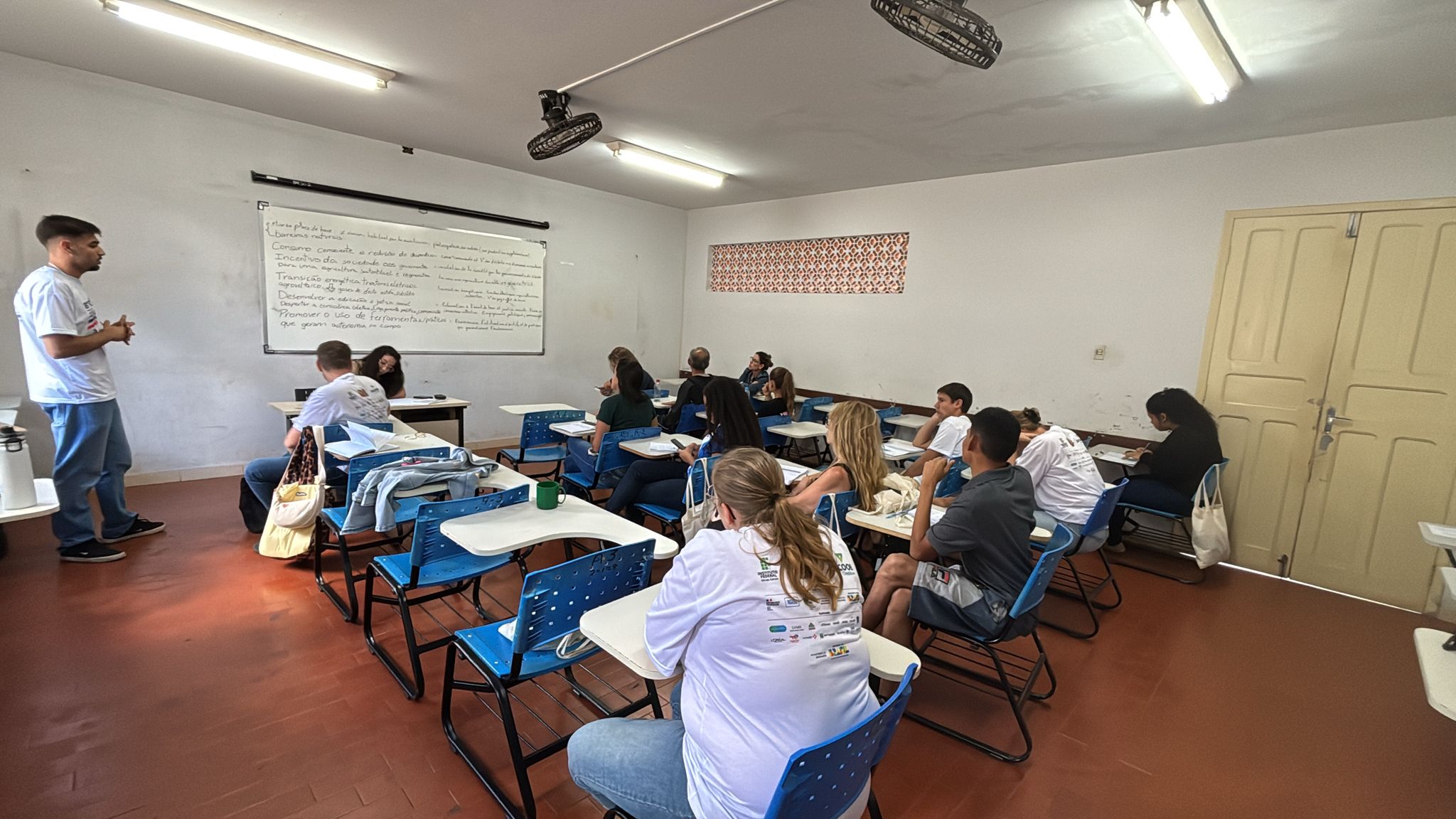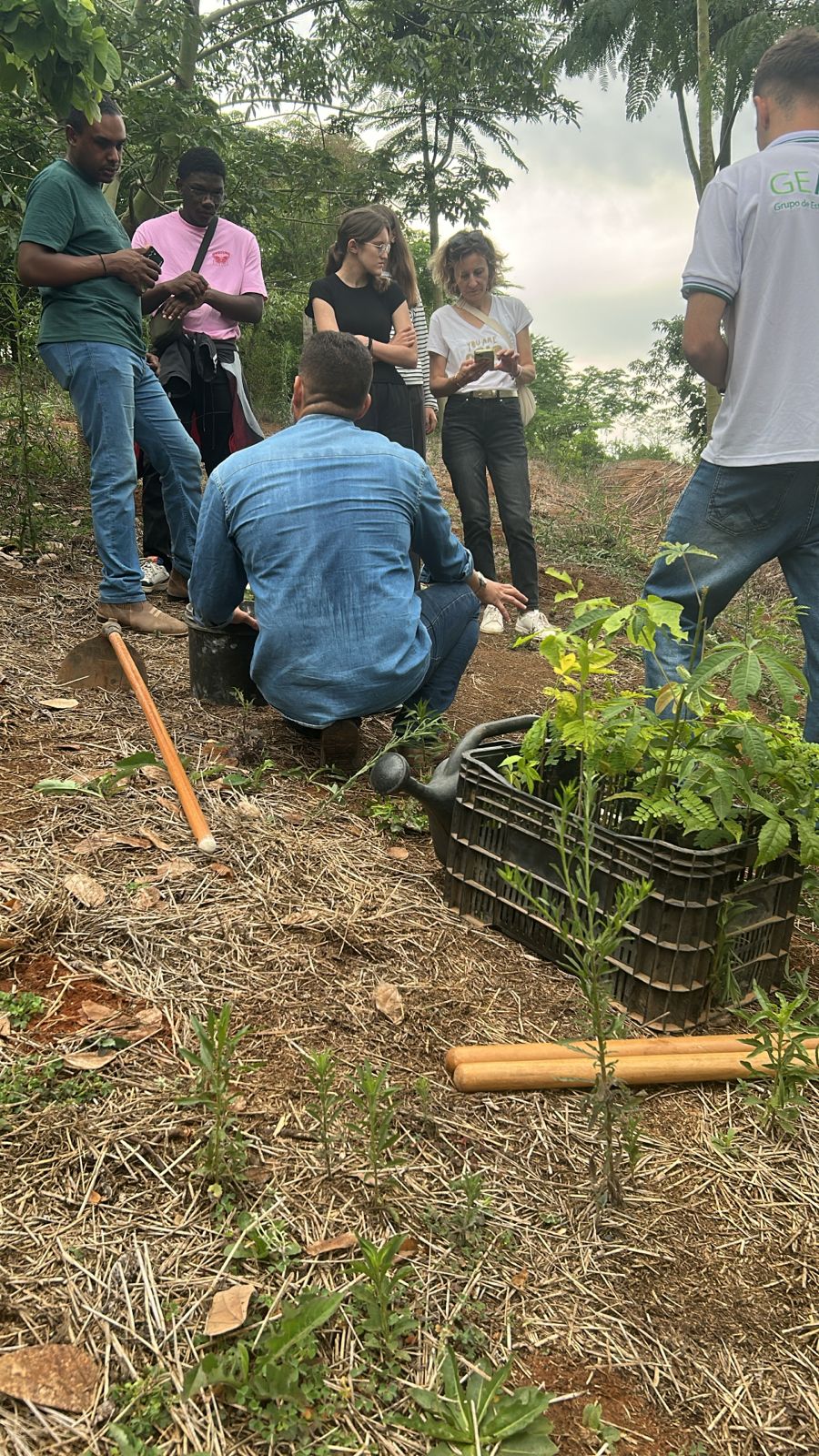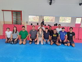 Nous avons échangé avec le directeur des études du campus et visité le secteur de paysagisme et de jardinage, où nous avons été reçus par la professeure Anna Lygia et par Generci. Avec le soutien de plusieurs amis et élèves, nous avons réalisé un semis de graines et le plantio de jeunes plants pour le reboisement, puis nous avons participé à une activité d’auto-défense avec le professeur de jiu-jitsu.