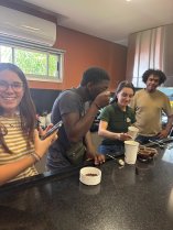 Au fil de cette semaine, nous avons également vécu des moments de pure convivialité entre les élèves brésiliens et français. Nous avons joué au football, couru avec les professeurs Mark et Rafaela et, pour célébrer cette cohabitation, nous avons organisé une fête réunissant des traditions des deux pays. Chaque sourire, chaque blague, chaque regard échangé entre les participants a renforcé les liens d’amitié et de solidarité internationale.