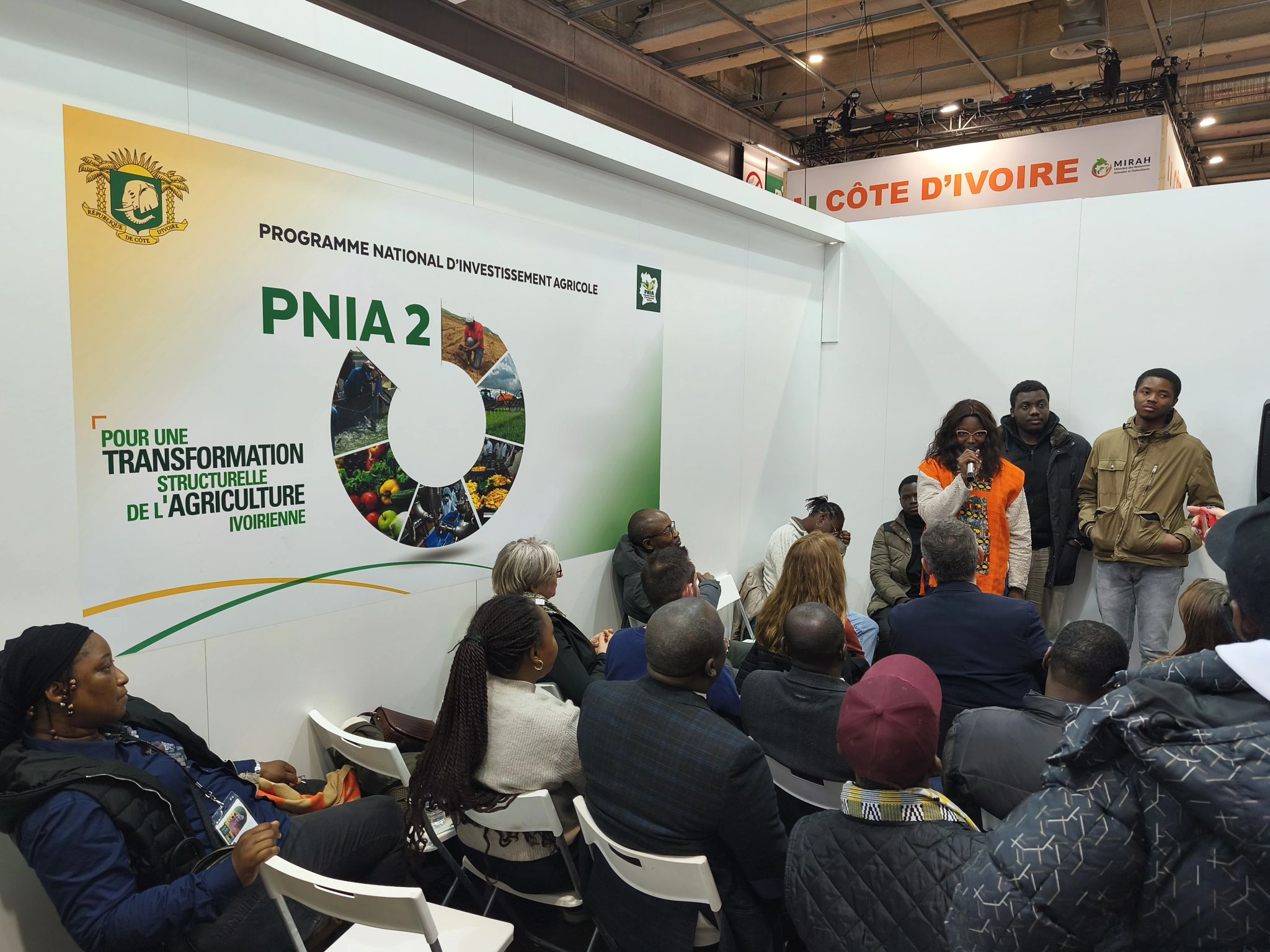 Ces échanges ont notamment trouvé écho sur le stand de la Côte d’Ivoire, où nous avons participé à une table ronde réunissant des volontaires en service civique du Togo, du Bénin et de la Côte d’Ivoire. L’occasion de partager nos projets de développement pour nos pays respectifs et de réfléchir à la valorisation des compétences acquises en France, afin de contribuer à une agriculture plus résiliente en Afrique.