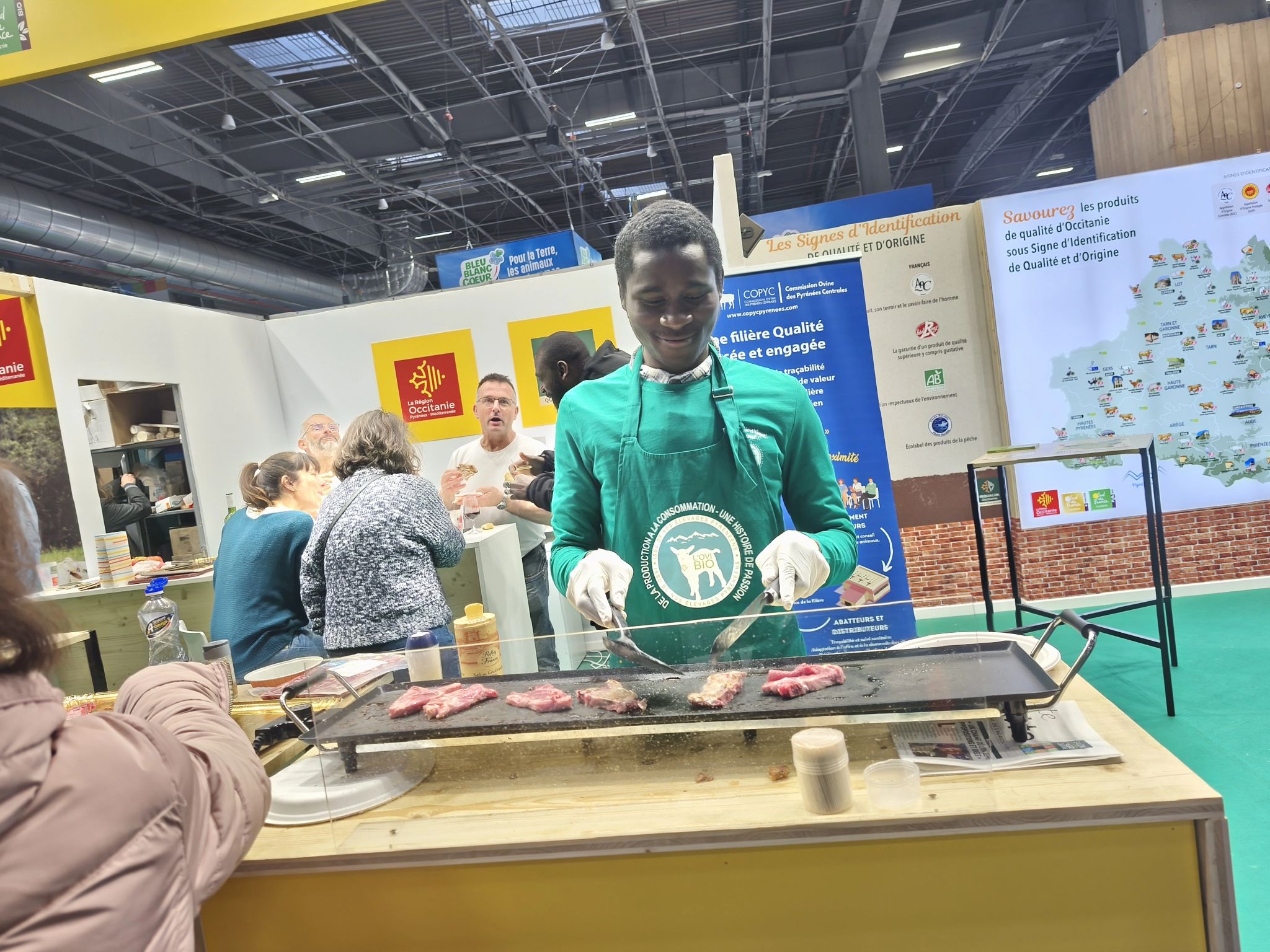 Sur le stand de la région Occitanie, nous avons eu l’opportunité de faire déguster l’agneau des Pyrénées🐑, une IGP de la région, élevé selon un cahier des charges rigoureux. Gigots et côtelettes étaient à l’honneur ! Ce moment privilégié nous a permis d’échanger avec les producteurs sur leurs pratiques respectueuses de l’environnement et leur engagement en faveur d’une agriculture biologique certifiée.